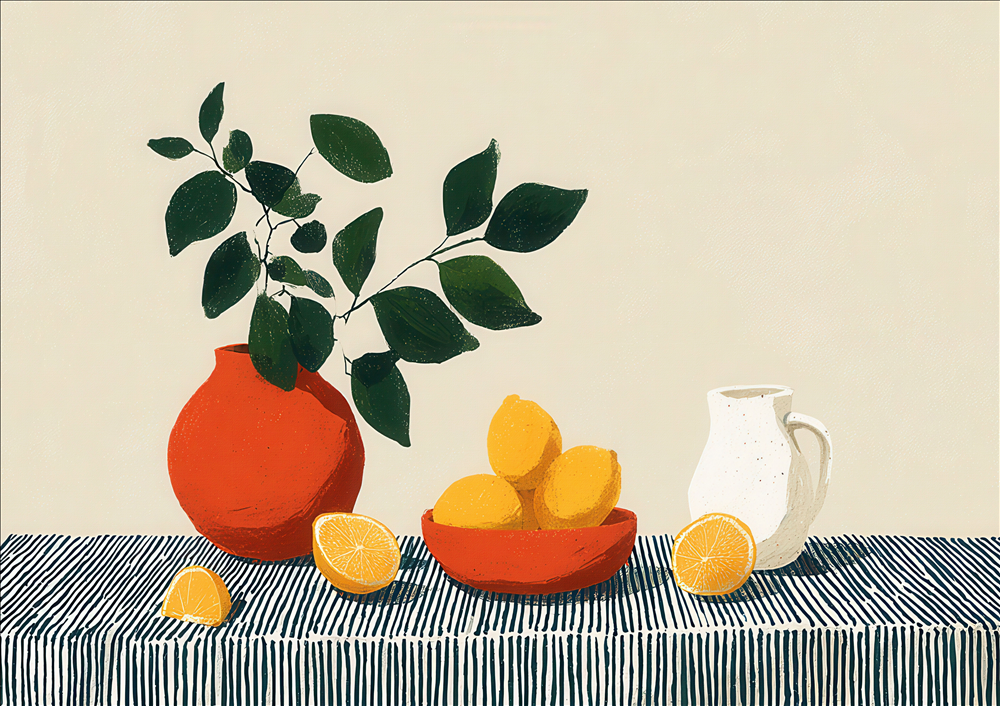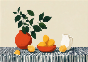 Modern Gouache is an interior design style centered around art that uses the distinct properties of gouache paint—an opaque watercolor with a matte finish. This style translates the paint's characteristics into decor, favoring a contemporary aesthetic characterized by flat, vibrant color blocking, crisp lines, and a smooth, velvety appearance. The result is a look that is both playful and refined, balancing simplicity with saturated hues to create spaces that feel clean, cheerful, and artfully curated. The style often leans into mid-century modern simplicity or bold, abstract geometric compositions.